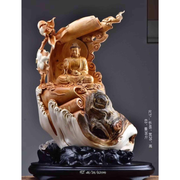 Tượng Phật A Di Đà gỗ nhai bách đem lại nhiều ý nghĩa Phật giáo.