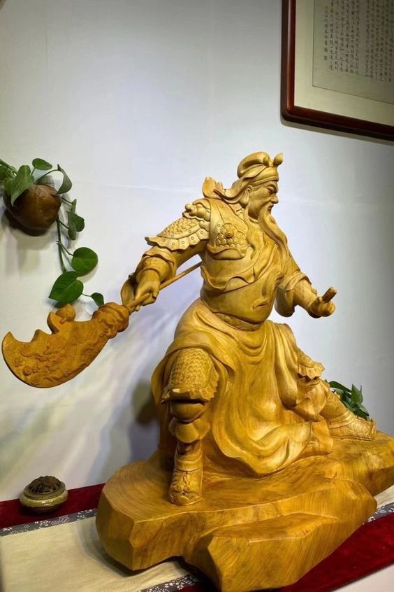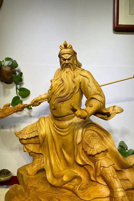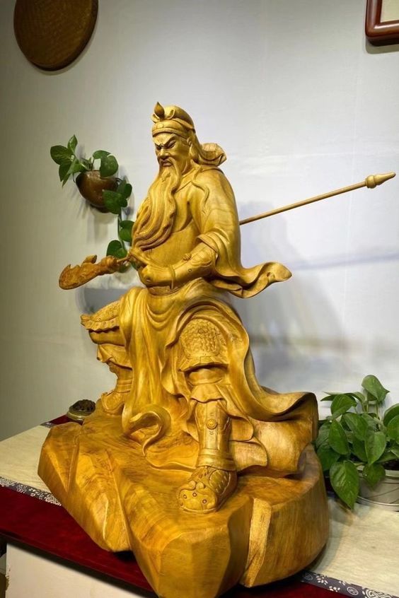 Quan Công được xem là vị thánh chuyên trấn áp hung khí, chống lại những thế lực tà ma ngoại đạo. Vì vậy, tượng của ông chuyên dùng áp chế những hung khí, mang lại sự bình an cho gia chủ và gia đạo. Tượng Quan Công được nghệ nhân điêu khắc nguyên khối gỗ long não quý hiếm.