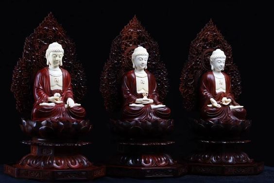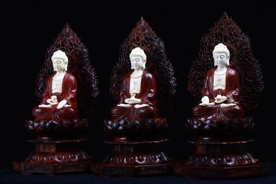 Tam Thế Phật nghĩa là Phật 3 thời: quá khứ, hiện tại và vị lai. Phật quá khứ đại biểu là Phật A Di Đà. Phật hiện tại đại biểu là Phật Thích Ca Mâu Ni. Còn Phật tương lai đại biểu là Phật Di Lặc. Nói rộng ra theo nghĩa này thì Tam Thế Phật nghĩa là vô lượng vô biên vô số chư Phật mười phương. Bộ Tam Thế Phật chuẩn thờ cao cấp điêu khắc tinh sảo gỗ tử đàn Ấn Độ mix Ngà mamut băng chủng quý hiếm.